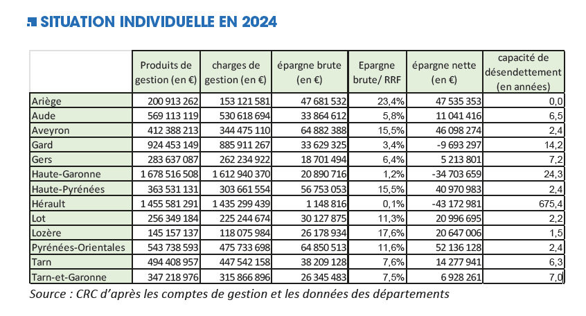 CHAMBRE RÉGIONALE DES COMPTES : ANALYSE DE LA SITUATION FINANCIÈRE DES DÉPARTEMENTS D’OCCITANIE