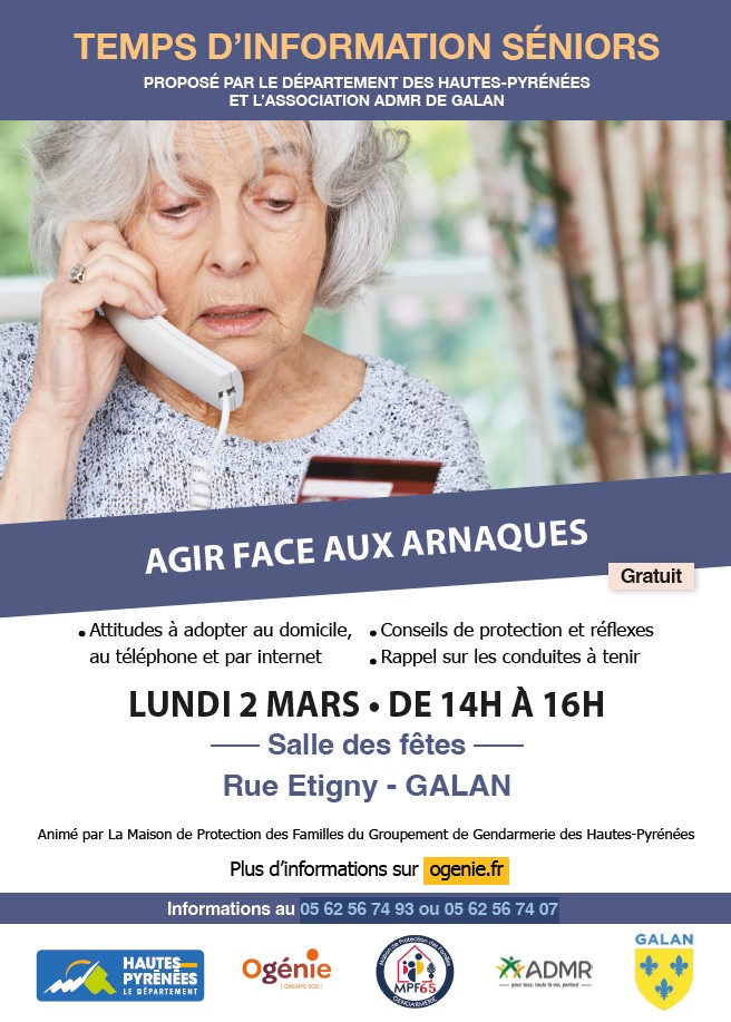 GRATUIT – TEMPS D’INFORMATION / AGIR FACE AUX ARNAQUES / LUNDI 02 MARS 2026 / GALAN