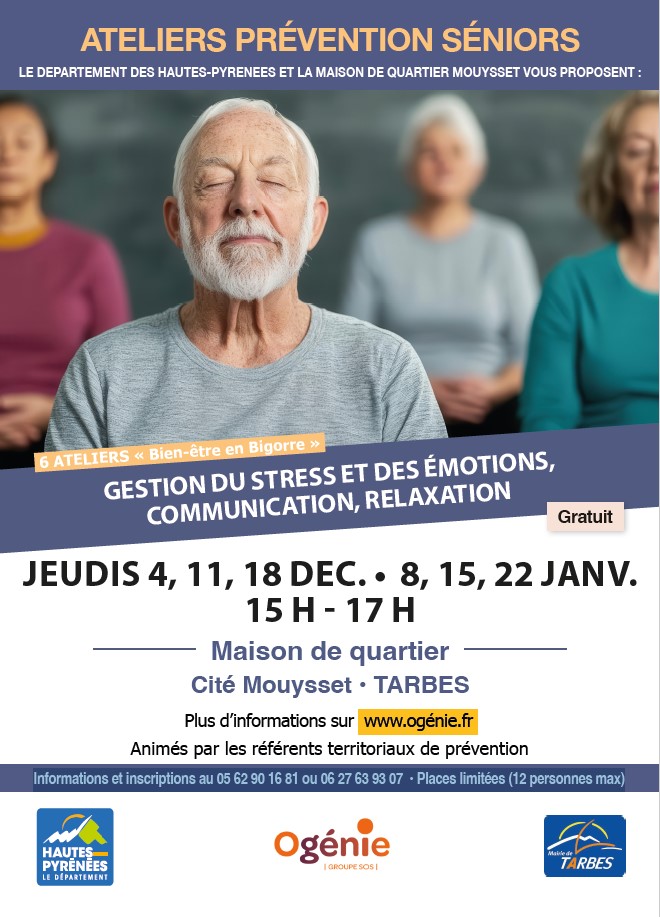 Le Département des Hautes-Pyrénées et la Maison de Quartier Mouysset vous invitent à participer à une action collective de prévention séniors