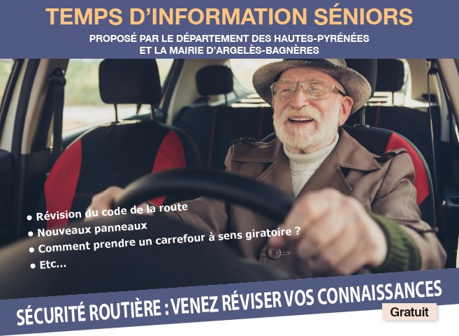 GRATUIT – TEMPS D’INFORMATION SENIORS / SECURITE ROUTIERE / ARGELES BAGNERES / MARDI 16 DECEMBRE