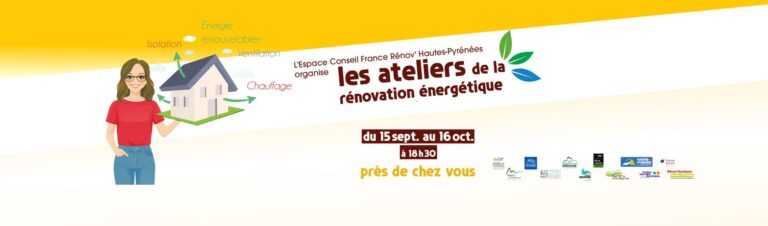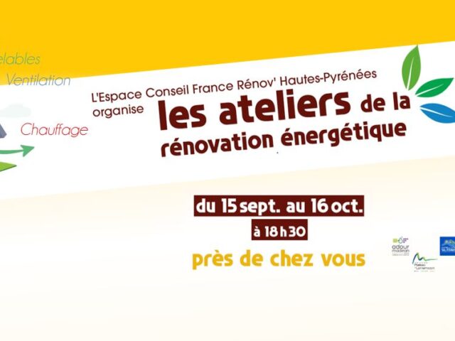 L’Espace Conseil France Rénov’ – Guichet Rénov’ Occitanie Hautes-Pyrénées organise les Ateliers de la Rénovation Énergétique.